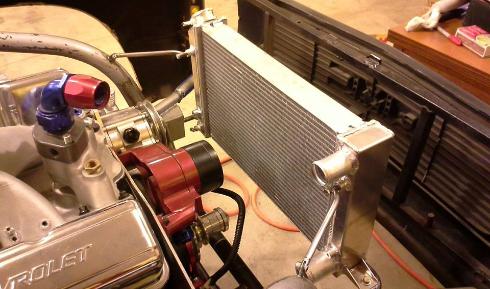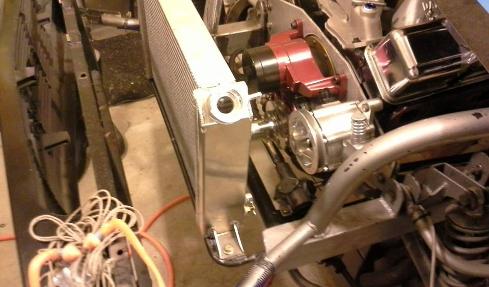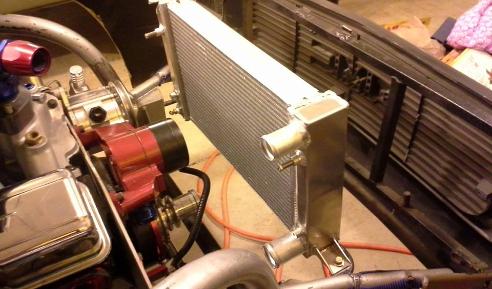 New Pro Stock radiator, And HANSEN FAB TECH custom made mount. At HANSEN FAB TECH there is